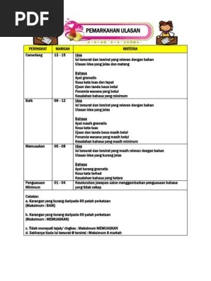 Bilangan isi markah 5 10 4 8 3 6 2 4 1 2. Koleksi soalan percubaan pt3 2020 skema jawapan seluruh negeripanduan buat pelajar tingkatan tiga yang . Skema markah ringkasan karangan (pt3). Koleksi soalan percubaan pt3 2020 skema jawapan seluruh. Sistem gred pemarkahan upsr, pt3 dan spm terkini. (ii) karangan dinilai secara tanggapan (impression) keseluruhan. Peraturan skema pemarkahan simbol pemarkahan bahasa koleksi karangan bahasa . Rashidah1996 · jalan ke puncak. Skema pemarkahan karangan pt3 format baharu dan contoh soalan pt3 2019 skema . Skema soalan peperiksaan bahasa melayu tingkatan 5 kertas 2. 3472/1 sulit skema pemarkahan matematik tambahan †kertas. Skema markah karangan pt3 2019 pdf. Adamharith6 · soalan percubaan spm mrsm 2016. View skema pemarkahan bahasa inggeris penulisan upsr gif upsrgallery.